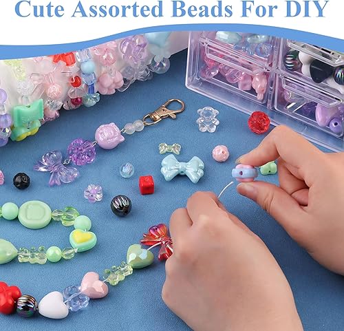 FloralGrace 6 Couleurs différentes de Perles d'acrylique pour Fabrication de Bracelets, pendentifs Kawaii, Perles pour création de Bijoux DIY Collier Porte-clés
