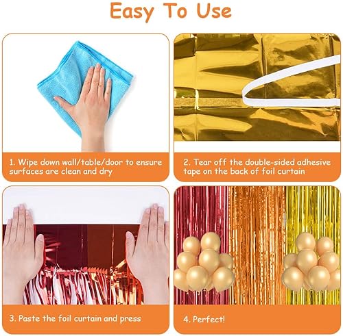 OFFCUP Rideau Métallique de Frange Multicolor, 4pcs Rideau à Franges AluminiumBrillant, 1m x 2m Rideaux à Franges Brillant pour Décoration Fête Mariage d'anniversaire