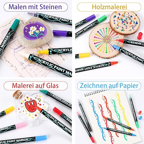 Nurila Lot de 12 feutres en porcelaine - Résistants au lave-vaisselle - Double pointe - Imperméables - Pour pierres, porcelaine, verre, dessin, projets de bricolage - Non toxiques et sans odeur