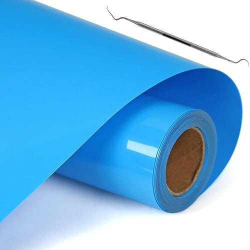 Vinyle Thermocollant Bleu Transfert Textile - 30,5 cm × 5 m Flex Thermocollant pour Tissu, pour Cricut Maker, Découpe Silhouette, vêtements, bonnets, pantalons, autres tissus