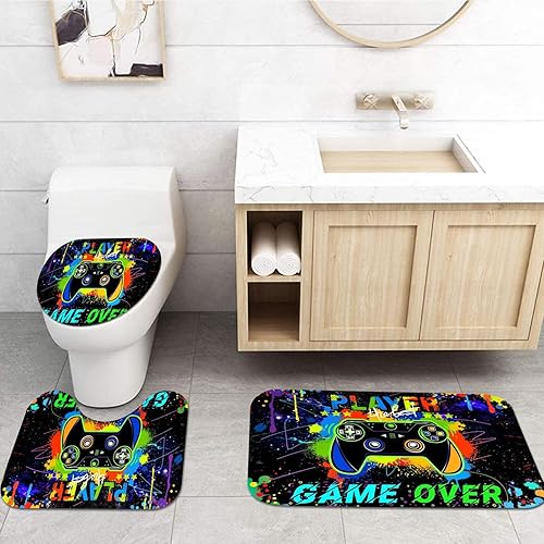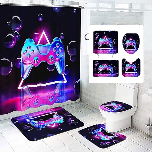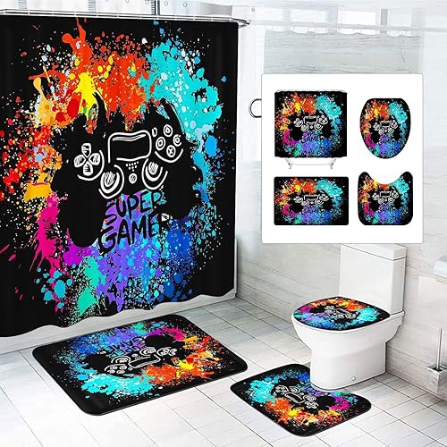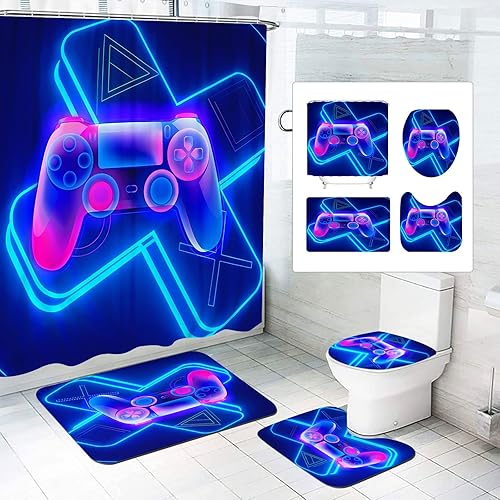 SMchwbc Lot de 4 rideaux de douche pour jeux vidéo 180 x 200 cm - En polyester - Tapis de salle de bain - 180 x 180 cm (l x H) - 3