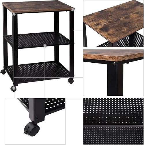 WOLTU Chariot de Cuisine, Chariot de Service à 3 Niveaux Vintage, étagère de Cuisine en métal et MDF, Desserte de Cuisine à roulettes, Chariot Commode Roulant Rustique, 60x40x76cm