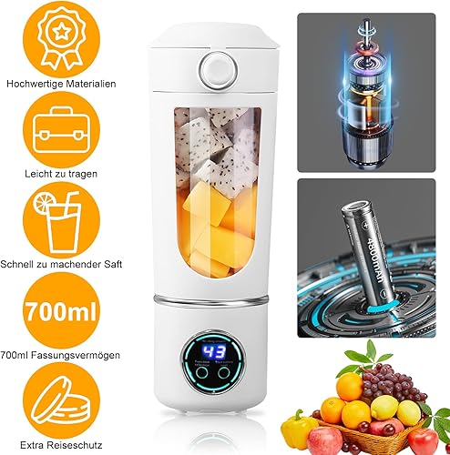 Mini blender à smoothie - 700 ml - Portable - Avec couvercle de voyage - 12 lames - 4 modes - Chargement de type C - Pour smoothies, jus et aliments pour bébé