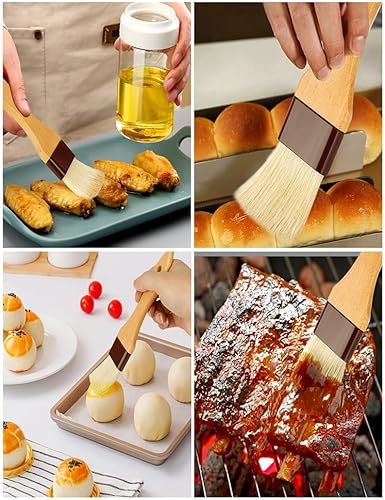 Balrbex Pinceau à Pâtisserie, Pinceau à Badigeonner pour la Cuisson, Pinceau à Poils pour Barbecue pour L' et la Sauce, Pinceau Alimentaire avec Manche en Bois pour la Cuisson