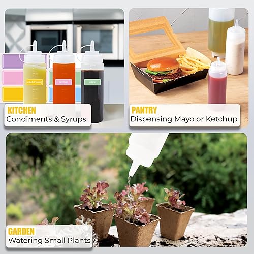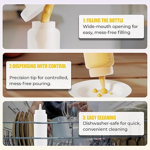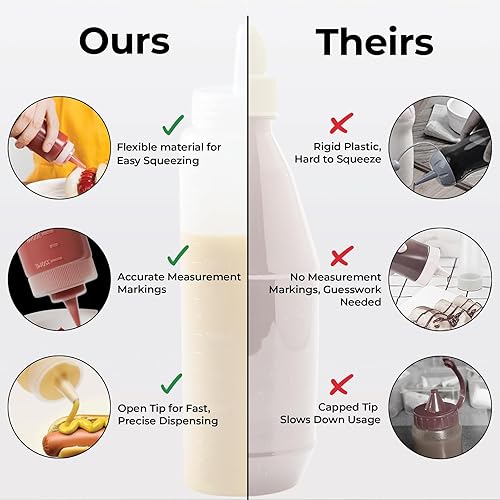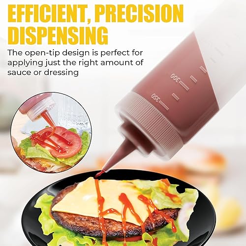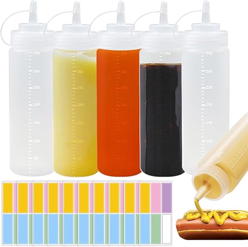 Hshenjhu 5 pcs 360ml Bouteille Sauce, Bouteille à Condiments sans BPA, Flacon Souple en Plastique avec Bouchon, Transparent Bouteille à Condiments et à Sauces pour Ketchup, Moutarde, Huile Dolive