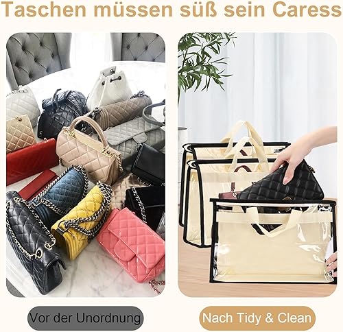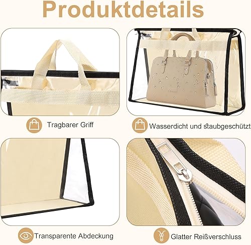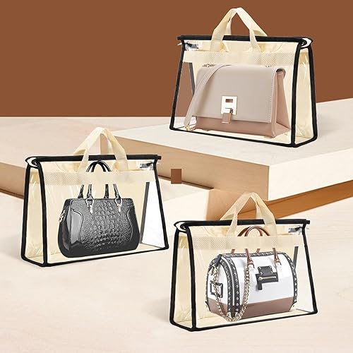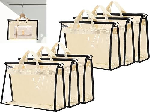 Lot de 6 sacs à poussière transparents pour sacs à main, organisateurs de rangement avec fermeture éclair et poignée, pour le rangement à suspendre au placard (6 pièces S)