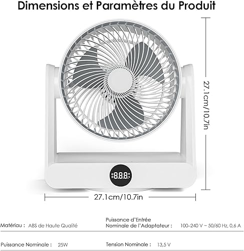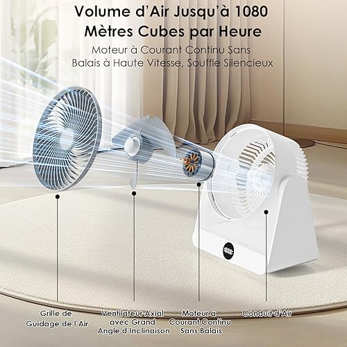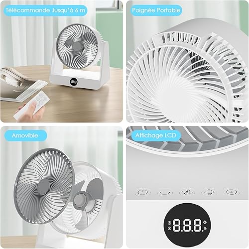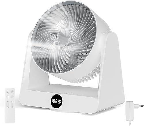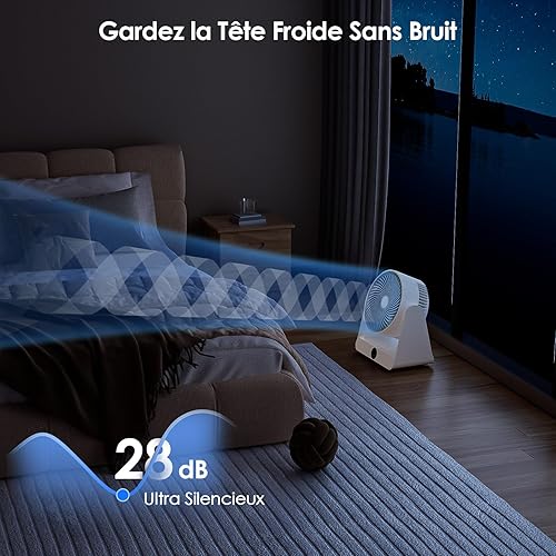 Dreamhigh® Ventilateur Silencieux avec Télécommande, 12 Vitesses, Minuterie 12H, Oscillation Automatique 90°, Ventilateur de Table Très Silencieux, Circulation d’Air, pour Bureau, Chambre, 30 m²