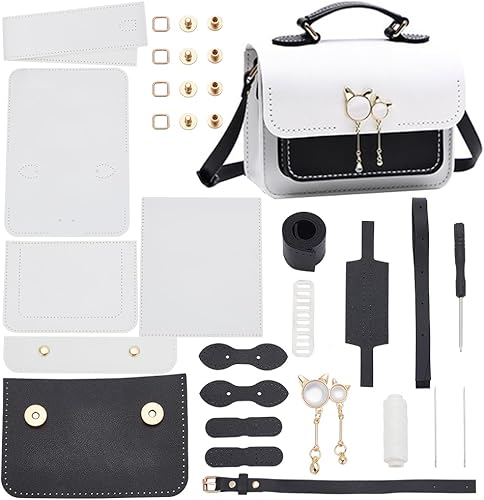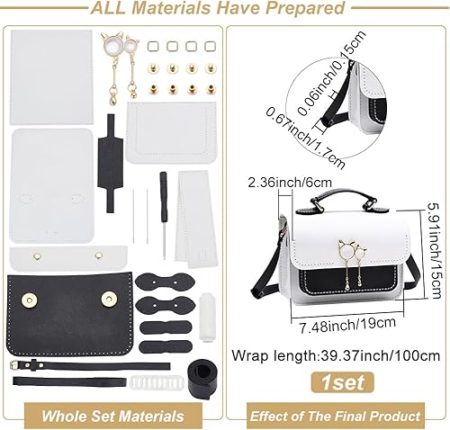 WADORN DIY Kit de Fabrication de Sacs à Bandoulière en Cuir PU, Sac à Bandoulière de Couture Fait à la Main, Fabrication deles Matériaux avec Instructions, Accessoires de Fabrication, 19x6x15 cm, Noir