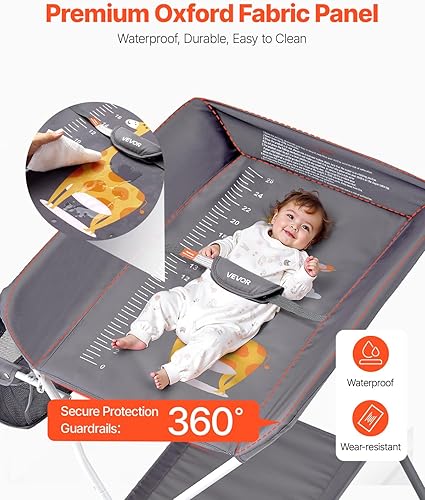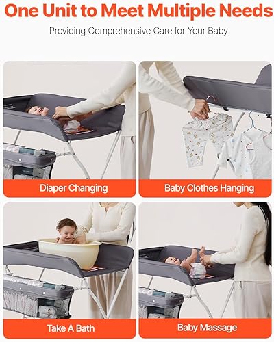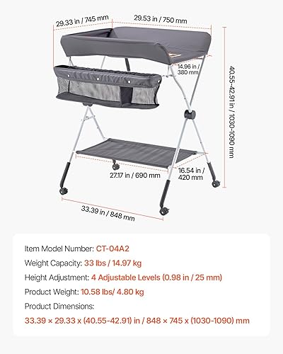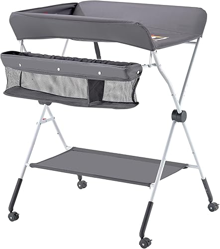 VEVOR Table à Langer Pliable, Plan à Langer avec Panier Latéral et roulettes Verrouillables, Meuble pour Bébés Réglable en Hauteur, Rangement Multifonction pour Chambres d'enfant, Gris Foncé