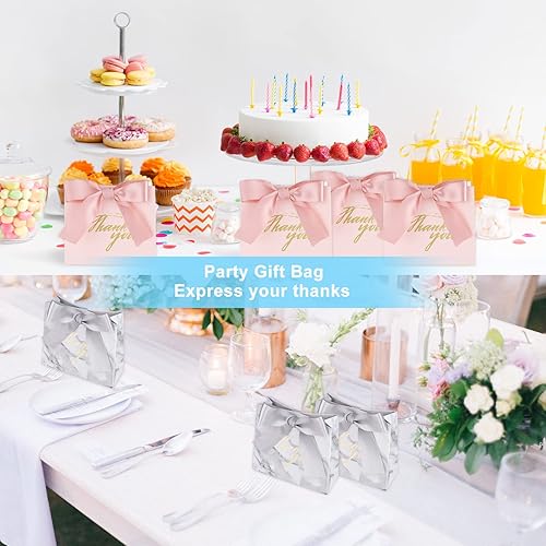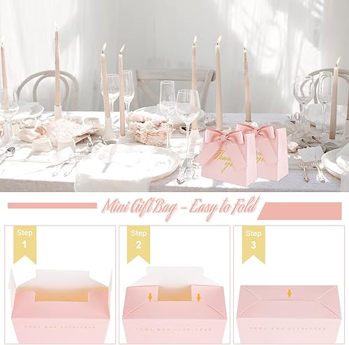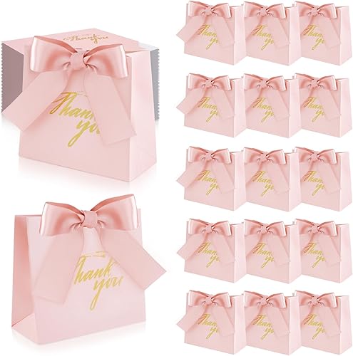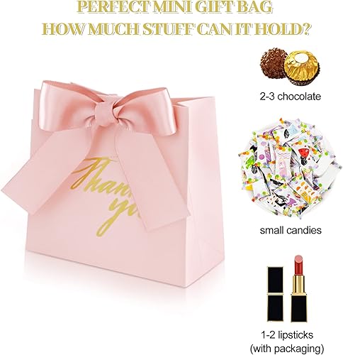 SHAIDOJIO 24 Pièces Thank You Sac à Cadeau Sachet Créative en Papier, Coffret Cadeau pour Bonbons, Bow Thank You Sac à Cadeau pour Anniversaire, Mariage Baptême(4.5x1.8x4 Pouces)-Couleur Rose