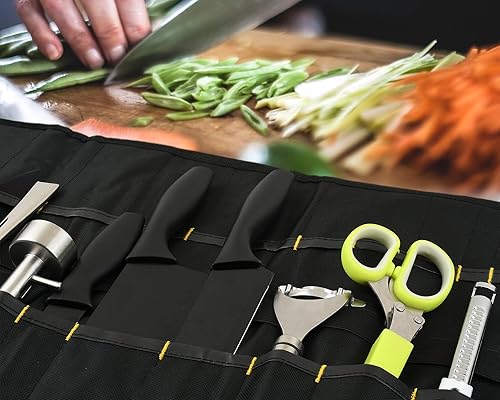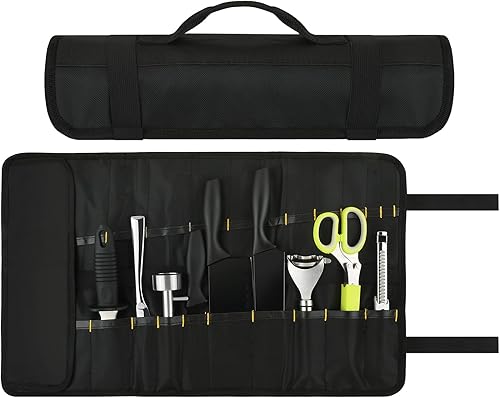 ds. distinctive style Sac à couteaux 10 emplacements plus 1 poche, Sac de rangement en toile pour couteaux de chef jusqu'à 30,5 cm