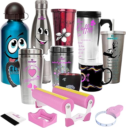 OMPERIO Porte-gobelet en Mousse avec Bord en Feutre pour appliquer des Autocollants en Vinyle, entièrement assemblé avec mesures pour Tasses, Bouteilles (Blanc/Rose) Conçu aux États-Unis par OMPERIO®