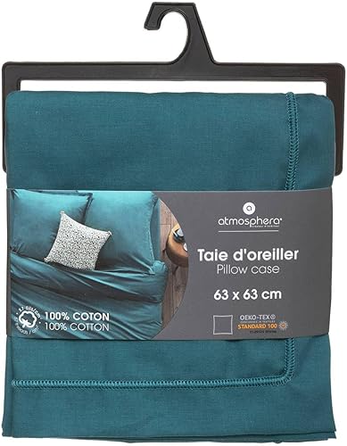 Atmosphera - Taie d'oreiller en Coton - Bleu Canard 63x63 cm