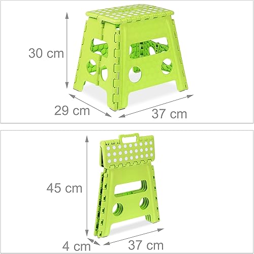 Relaxdays Tabouret Pliable, Plastique, 1 Marche, marchepied pour Enfant, HLP: 32,5x37x30 cm, Max. 120 kg, Vert