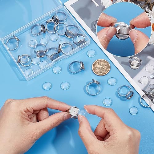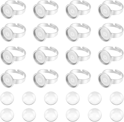 UNICRAFTALE 20 Ensemble Bagues à Dôme Vierges DIY Base D'Anneaux Vierges 304 Kit de Fabrication de Bagues Réglables Acier Inoxydable Paramètres de Bague Cabochon Lunette de Base de Bague Plateau 12mm