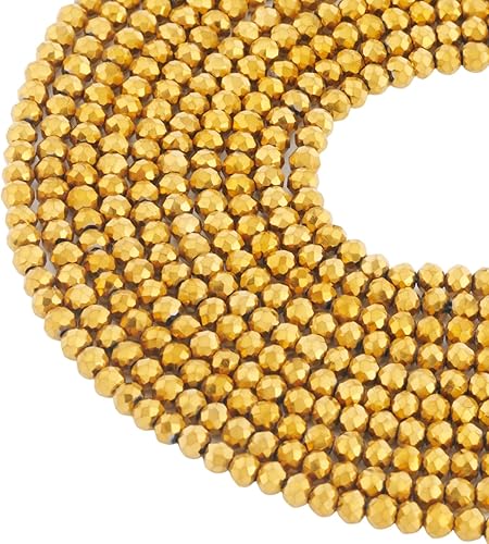 Lot de 2200 perles rondes en verre galvanisé de 2 mm - Couleur dorée - Perles à facettes - Perles d'espacement en vrac pour colliers, bracelets, bijoux, loisirs créatifs