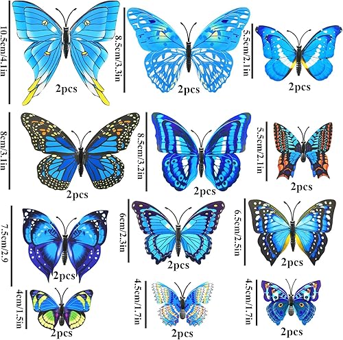 3D Papillon Stickers Muraux pour décoration 24PCS de Maison Autocollants Muraux de Papillons 3D Sticker Mural bricolage papillon amovible Réutilisable Pour chambre Salon Mei Hong