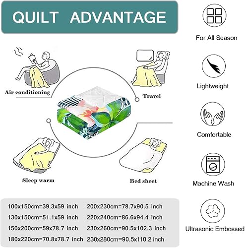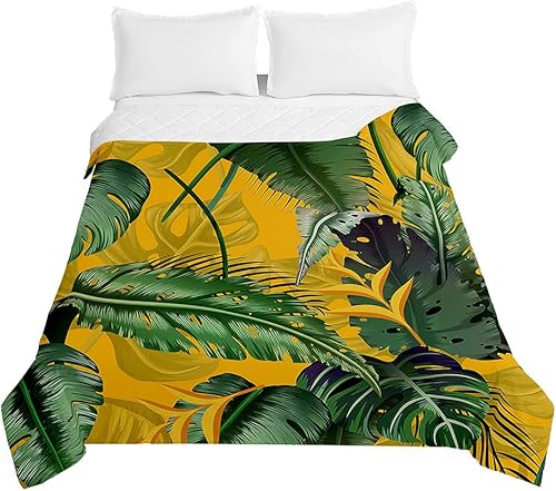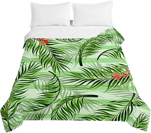 Surwin Couvre Lit Matelassé pour 1/2 Personnes, Plantes Tropicales 3D Dessus de Lit Réversible Couverture de Lit Doux Microfiber Jeté de Lit Couvre-lit Printemps Été (Feuilles Vertes,230x260cm)