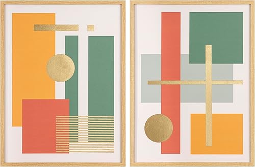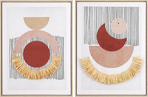 Baroni Home Lot de 2 Tableaux en Toile avec Cadre en Bois pour Salon, Décoration Murale Colorée et Fantaisie Moderne pour Chambre et Cuisine, Impression de Qualité, Abstrait avec Paille, 45x60x3 cm