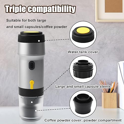 Ruspela Machine à expresso électrique portable, mini cafetière électrique rechargeable de voyage compatible avec les capsules NES et les capsules DG et le café moulu pour le camping, la randonnée, le