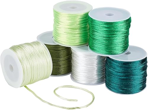 PH PandaHall 180m Corde en Nylon 1mm Queue de Rat Satin Cordon Vert Bracelet Fil de Corde pour Macramé Kumihimo Bracelet D'Amitié Collier Noeud Chinois Capteurs de Rêves Tresse Cheveux 6 Couleurs