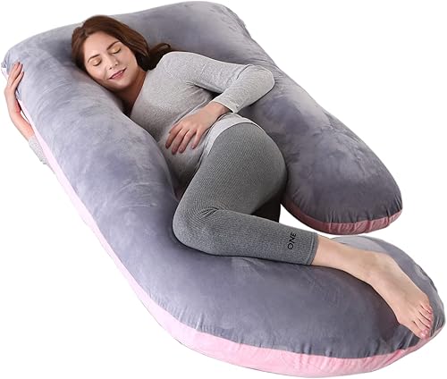ALANTOP Oreiller de maternité en Forme de U, oreillers de Grossesse pour Dormir, Oreiller de Corps, Oreiller Complet, Soutien Abdominal de la Hanche, Oreiller de maternité Doux et Confortable