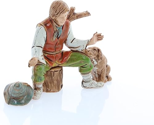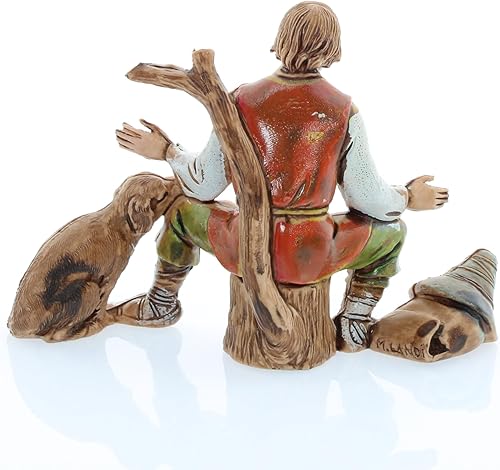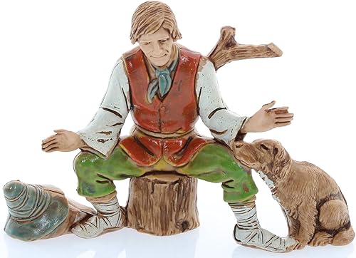 Moranduzzo Berger Assis avec Chien pour Crèche de 10 Cm Échelle 1:20-Figurines de Crèche Indestructibles-Style 700',Peinture Finition à la Main,Produit Officiel,Fabriqué en Italie,Sculpteur M. Landi