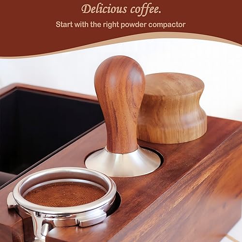 NathrBTV Tamper à Café 51MM Tampon à Café Tasseur de Café en Acier Inoxydable Poignée en Bois Espresso Tamper avec Base Ondulée Poignée en Bois Presse-Café Doseur à Café pour Amateurs de Café