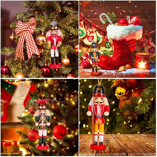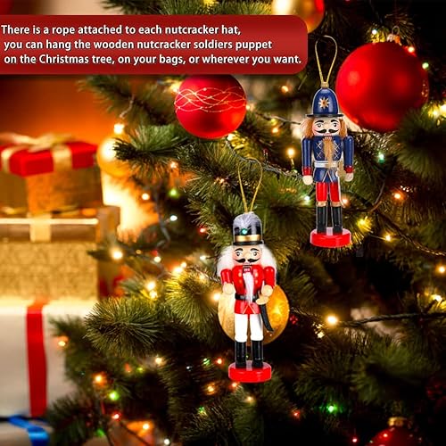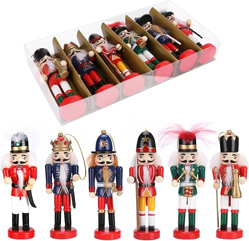Achort Casse Noisette en Bois, Lot de 6 Peint à la Main Coloré Figurine de Soldat, Décorations Maison Ornement d'arbre de Noël pour Enfant, Famille, Amis, 13,5cm