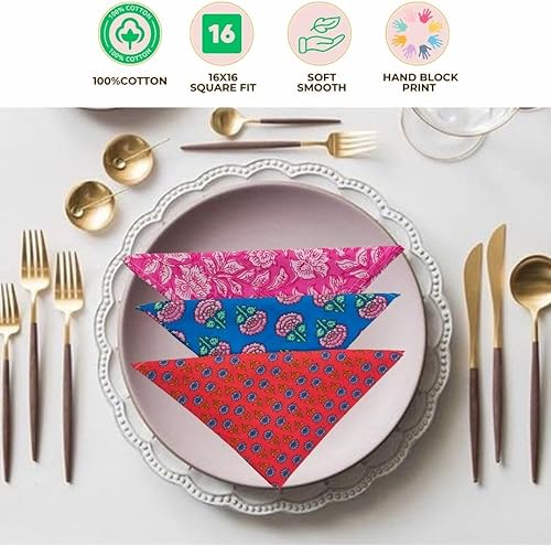 Lot de 10 serviettes de table imprimées à la main 100 % coton - 40,6 x 40,6 cm - Multicolore