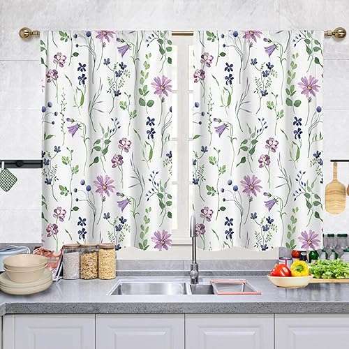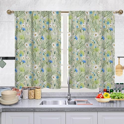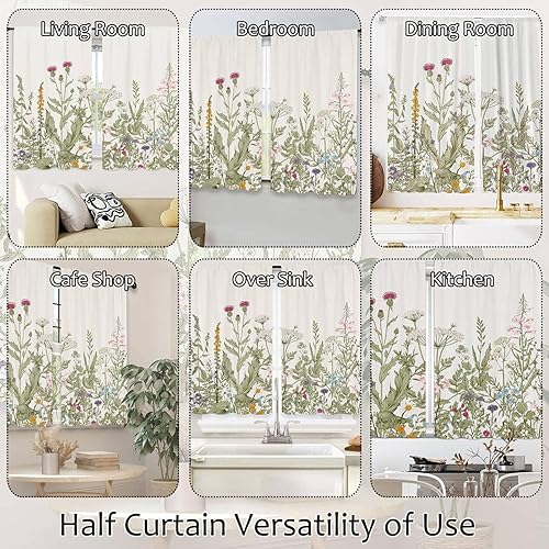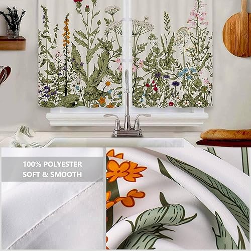 Highdi Lot de 2 Rideaux Cuisine, Courts Rideau Cuisine Rideau sous Evier, Petites Fenêtres Voilage Fenetre avec œillets pour Bistrot, Salon, Maison de Campagne (Orange,107x80cm)