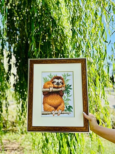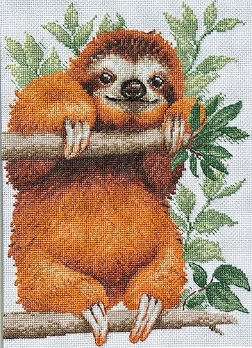 RIOLIS - Paresseux 2213, kits de point de croix animaux 21,3 x 29,9 cm, kits de point de croix pour débutants et avancés, kits de point de croix pour adultes, kits de point de croix comptés, kit de