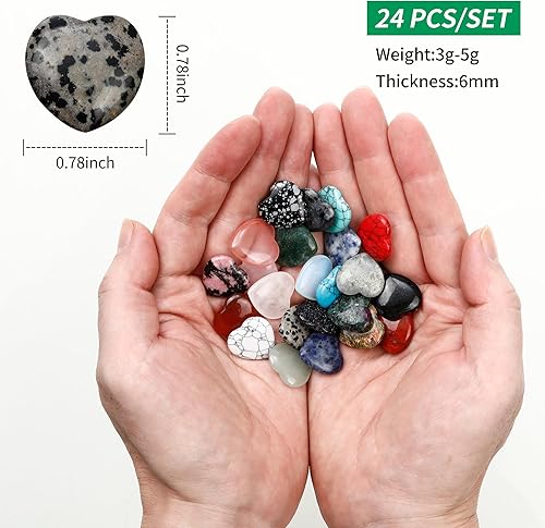 24 Pièces Cristal en Forme Coeur,Cristaux de Guérison Naturels 20mm,Pierre Porte-Bonheur en Forme de Cœur Naturel, Cadeau d'anniversaire, Décoration de la Maison, Artisanat en Forme de Cœur
