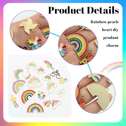 Moguri Lot de 40 breloques arc-en-ciel en forme de cœur pour bracelets, pendentifs en perles pour bijoux, porte-clés, connecteurs de bijoux, accessoires de bricolage, pendentifs