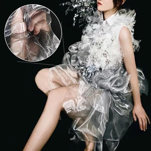 Tissu en organza irisé bleu paon 3 m x 150 cm - Dégradé de dentelle - Ruban magique brillant - Tissu coloré - Tissu transparent à coudre - Tissu décoratif pour bricolage, bricolage, costume, mariage