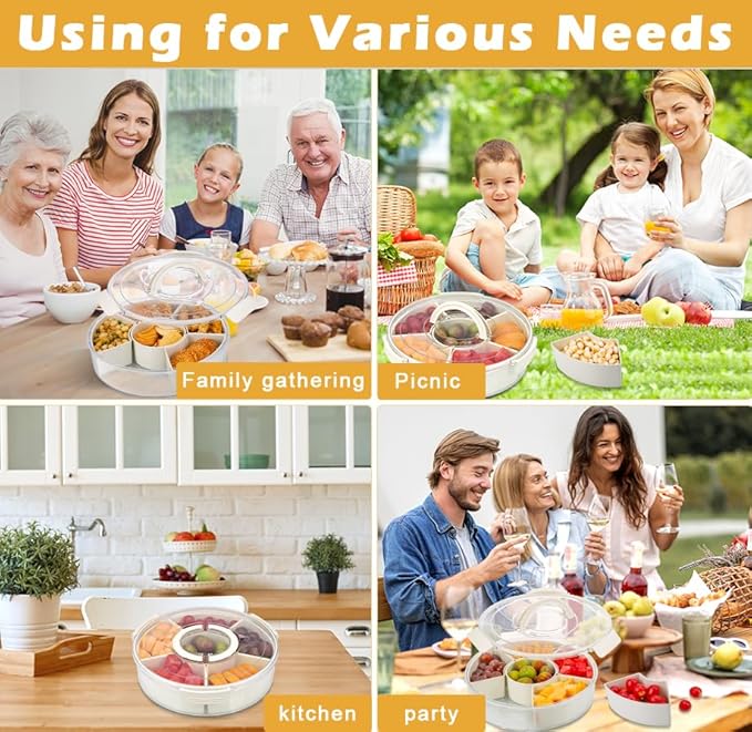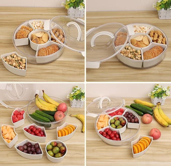 Hejo Snack Box avec Compartiment Orbiculaire Boite Compartiment Alimentaire Conteneurs à Goûter Portables avec 6 Compartiments, Organiseur Multifonction pour la Maison, les Fruits (30x30x7.5cm)