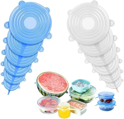 Couvercle Silicone Alimentaire 12 Pièces, Couvercle Silicone Extensible Réutilisable sans BPA, eco Couvercle Casserole Silicone Universel de 6 Tailles Différentes