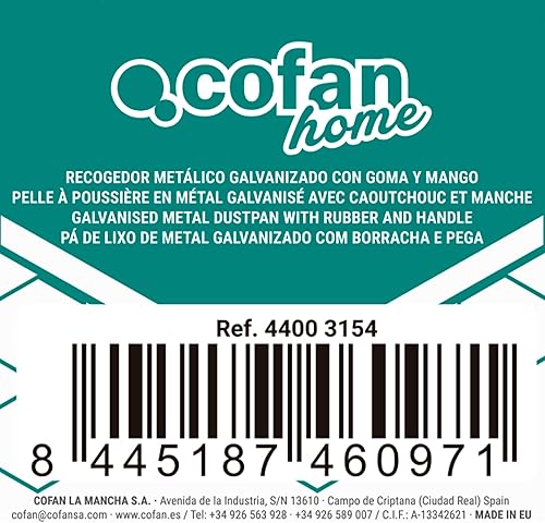 Cofan Pelle à poussière en métal avec Caoutchouc | Manche Inclus | Haute résistance | Dimensions : 83 x 24 cm