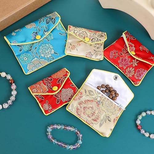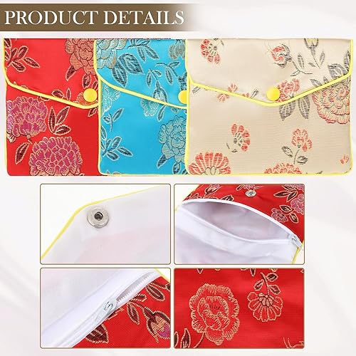 ElevateTech Lot de 9 pochettes à bijoux en soie chinoise - 3 tailles - Brocart brodé - Pour voyage, mariage, fête d'anniversaire