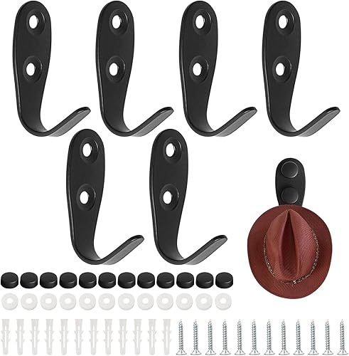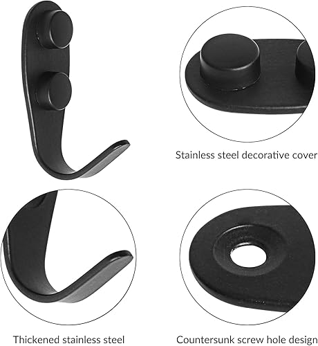 YSDMY 6 Pièces Crochets individuels avec vis et boulons Porte Manteau Mural Individuel pour la Maison, étagères, Tiroirs, Casiers, Bain (Noir) Charge 32 kg