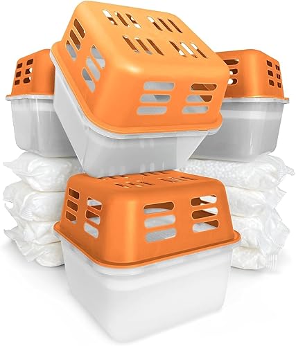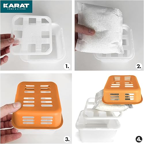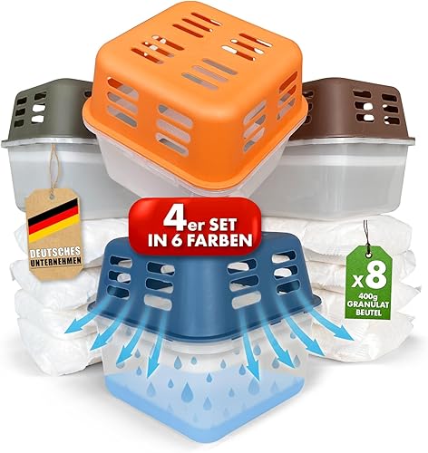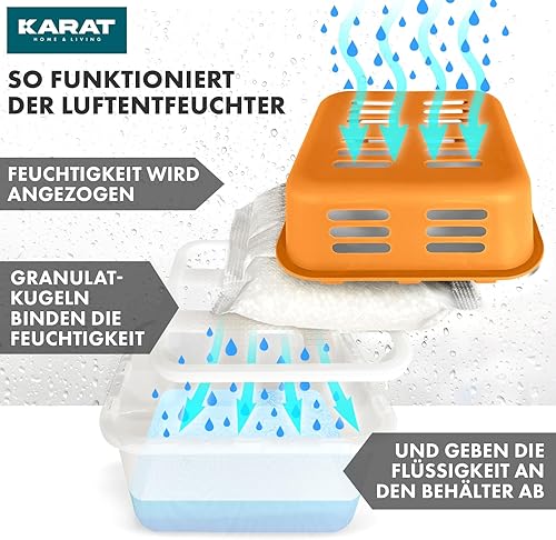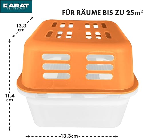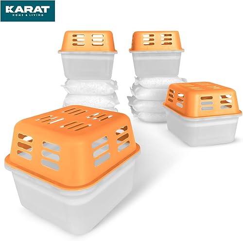 KARAT Lot de 4 déshumidificateurs avec 8 sachets de recharge de 400 g de granulés rechargeables et réutilisables (orange, Kuki)