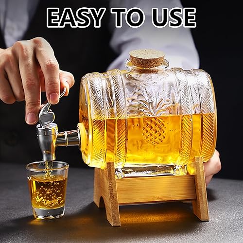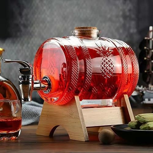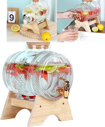 Distributeur De Boissons En Verre, Distributeur De Boissons En Forme De Tonneau 1 L Avec Support Carafe à Whisky Pour Alcool Avec Robinet RéCipient Pour Boissons Froides Pour RéFrigéRateur, Thé Glacé