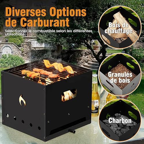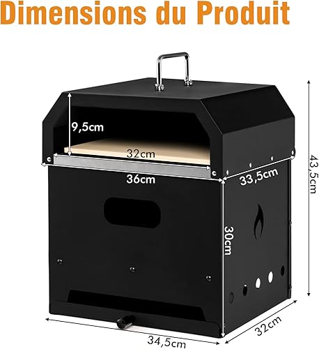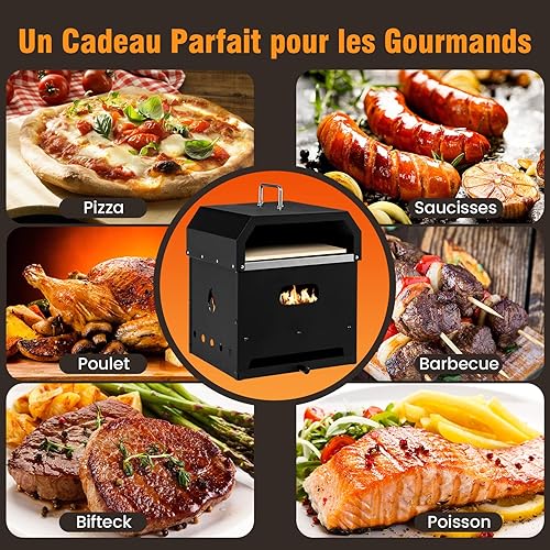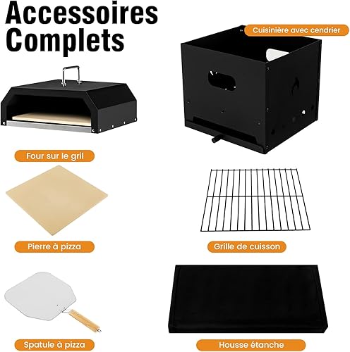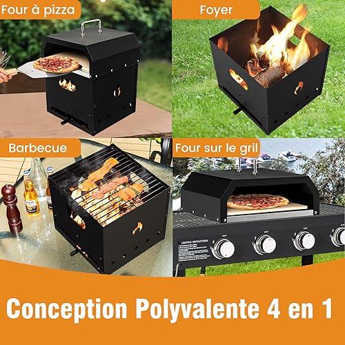 COSTWAY Four à Pizza Portable 4 en 1, Four à Pizza à Bois Construction Robuste à 3 Couches, Pierre à Pizza de 33CM, Grill à Pizza pour Jardin Camping Cuisine