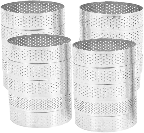 Sxdluzi Lot de 20 Anneaux Ronds avec Trous, aux Fruits, quiches, gâteaux, Mousse, Cuisine, Moule à gâteau, Moule à gâteau, Anneau perforé, Mousse de 8 cm