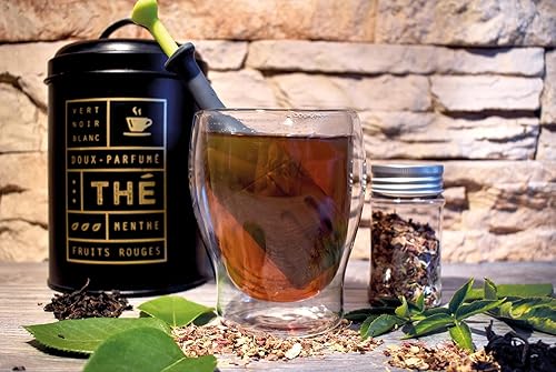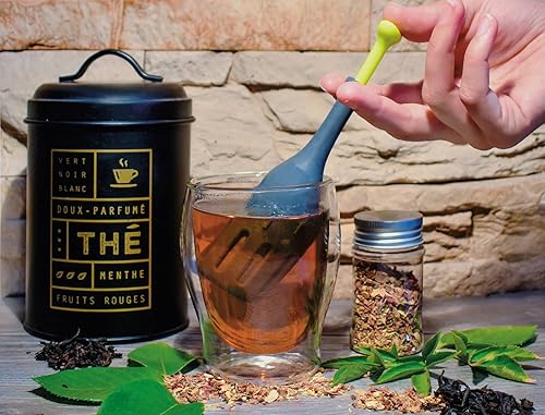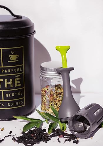 DETOXIMIX - Infuseur à Thé Tisane Café à Piston - Filtre Égouttoir Passoire intégré - Réutilisable - Pas de dépôt dans la Tasse - Boule à Thé