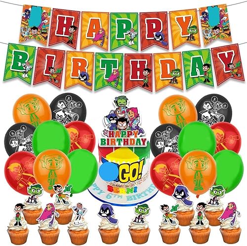 Set de Décoration de Fête Titans, Décoration d'Anniversaire Titans, Bannière d'Anniversaire Titans, Ballons de Décoration de Gâteaux pour les Fêtes d'Anniversaire à Thème des Enfants