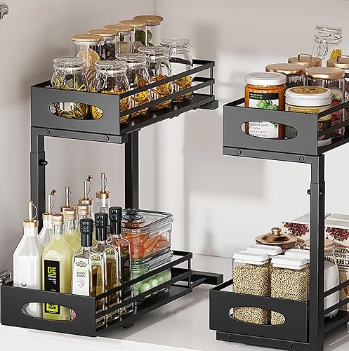 Organiseur de Rangement Extractible sous L'évier, Rangement Coulissant de Cuisine Polyvalent sous L'évier, Organisateur D'armoire Coulissante à 2 Niveaux pour Salle de Bain et Cuisine