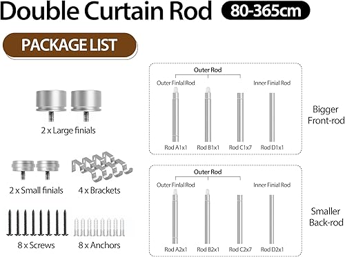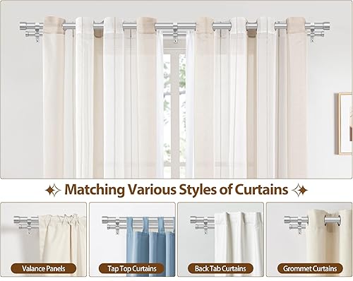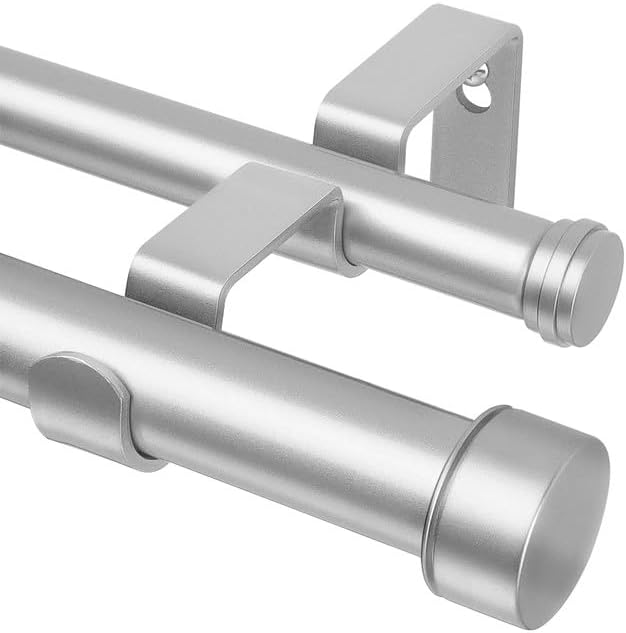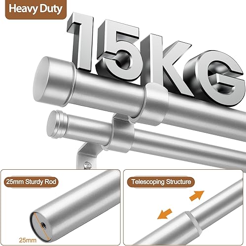 HOTOZON Tringle à rideaux double voie 25 mm extensible avec supports pour salon, cuisine, chambre à coucher Argenté