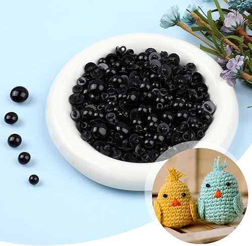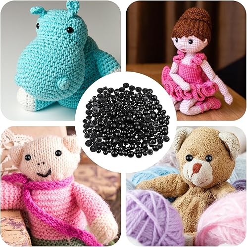 Lot de 320 boutons noirs pour yeux de bricolage, 8/9/10/11,5/12,5/15 mm en plastique noir Solid Safety Eyes, yeux de sécurité pour animaux au crochet pour bricolage ours, peluches, crochet,