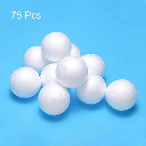 QUARKZMAN Balles en Mousse Blanche Rondes de 0,59 Pouce, Sphères en Polystyrène pour l'Artisanat, pour Projets Artistiques, Projets Domestiques et Décoration de Fête, 75 Pièces